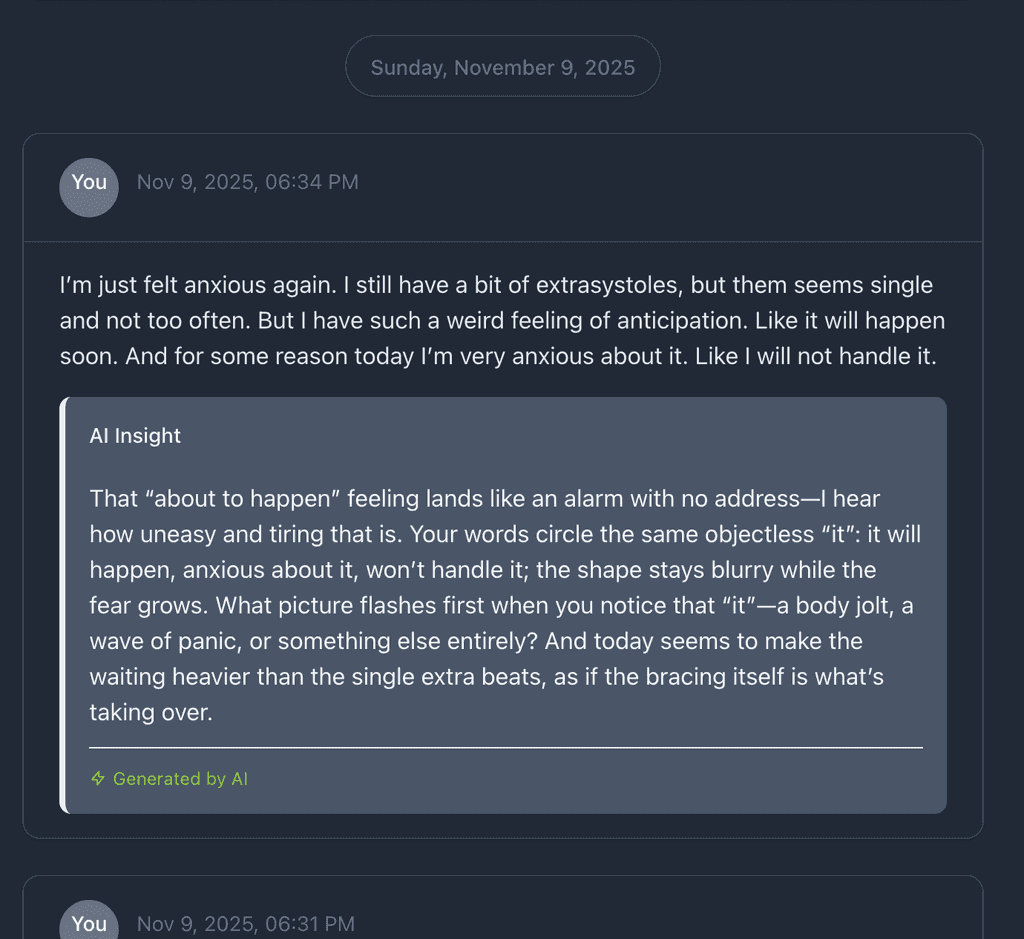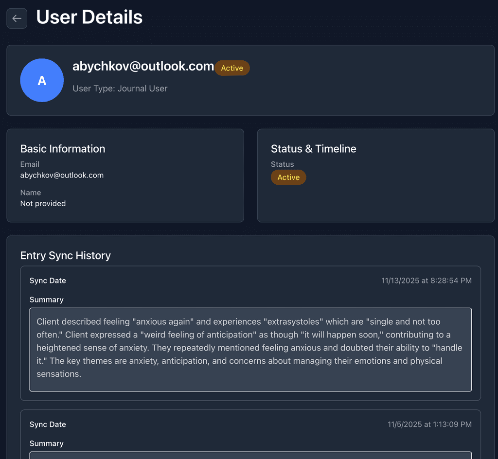 Before the next session, you receive a summary of the client’s week — in the client’s words.